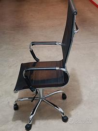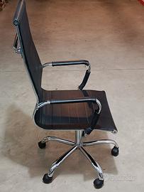 Poltrona presidenziale o da ufficio in pelle nera con rotelle, in condizioni pari al nuovo