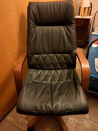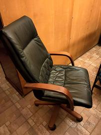 vera pelle e braccioli e piedi in legno pregiato con rotelle