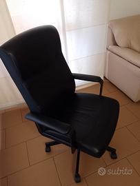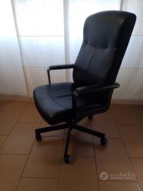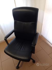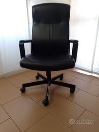 Poltrona da ufficio, girevole con rotelle, in ecopelle colore nero