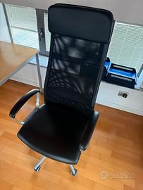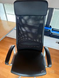 Sedia ufficio ergonomica con schienale alto – rete traspirante + poggiatesta Vendo sedia da ufficio ergonomica, comoda e funzionale, ideale per smart working o studio prolungato. Design moderno con schienale alto in rete traspirante e poggiatesta imbottito per un ottimo supporto della schiena e della zona cervicale. Struttura solida con base a 5 razze e ruote scorrevoli. Seduta ampia e confortevole. Caratteristiche: •Schienale alto in mesh traspirante •Poggiatesta imbottito •Seduta ampia e comoda •Braccioli con struttura resistente •Altezza regolabile •Base con ruote Misure: •Seduta: larghezza 53 cm – profondità 42 cm •Altezza da terra: min 44 cm / max 55 cm •Altezza schienale: 83 cm (dalla base della seduta) Condizioni: ottime Perfetta per chi cerca una sedia comoda ma dal design leggero e professionale. Ritiro a mano