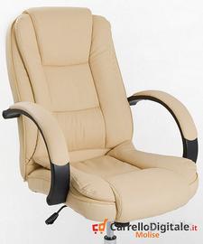 Comodissima Poltrona ergonomica girevole in Ecopelle. -Prezzo: 98,90 euro IVA inclusa -Trasporto GRATIS in tutta Italia -Possibilità di pagare alla consegna con 6 euro in più Ideale per riunioni e conferenze in ufficio, ma anche per la casa e lo studio in cameretta, dispone di un pistone a gas per regolare l'altezza a livello della scrivania e di un sistema dondolo per regolare la postura. Realizzata con ottimi materiali, questa comoda sedia presidenziale, può reggere carichi molto pesanti. In particolare la qualità dell'ecopelle utilizzata per il rivestimento è ottima ed è caratterizzata damorbidezza al tatto, traspirabilità, idrorepellenza, resistenza all'usura e facile pulizia. Tutte le nostre comode e anatomiche poltrone non sono mai state usate, sono anzi fornite nuove con garanzia e regolare documento fiscale (fattura o ricevuta fiscale a scelta). SCHEDA TECNICA: - Colore Seduta : Beige - Altezza Regolabile a Gas - Poggiabraccia Imbottiti - Supporto Lombare - Meccanismo a dondolo regolabile e bloccabile - Altezza Spalliera: 68cm - Larghezza Spalliera: 53cm - Profondità Seduta: 54cm - Larghezza Seduta: 54cm - Larghezza Seduta con braccioli: 65cm - Altezza Spalliera da terra min/max: 109/120cm - Altezza Seduta da terra min/max: 47/58cm - Base in acciaio con 5 Ruote - Diametro base con ruote: 66cm sedie imbottita poltroncine riunione conferenza direzionale Contattaci subito per avere maggiori informazioni. Oppure inviaci un messaggio con il tuo numero e ti richiameremo non appena possibile Telefono/Whatsapp: 388 3274125