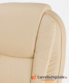 Comodissima Poltrona ergonomica girevole in Ecopelle. -Prezzo: 98,90 euro IVA inclusa -Trasporto GRATIS in tutta Italia -Possibilità di pagare alla consegna con 6 euro in più Ideale per riunioni e conferenze in ufficio, ma anche per la casa e lo studio in cameretta, dispone di un pistone a gas per regolare l'altezza a livello della scrivania e di un sistema dondolo per regolare la postura. Realizzata con ottimi materiali, questa comoda sedia presidenziale, può reggere carichi molto pesanti. In particolare la qualità dell'ecopelle utilizzata per il rivestimento è ottima ed è caratterizzata damorbidezza al tatto, traspirabilità, idrorepellenza, resistenza all'usura e facile pulizia. A differenza della maggior parte dei rivestimenti utilizzati per le altre poltrone che potete trovare in commercio, non avrete la sensazione di essere seduti sulla plastica o su una pelle di scarsa qualità. Rispetto ad altri venditori, abbiamo preferito questo tipo di ecopelle di altissima qualità al posto di una pelle scadente, dura e quindi sgradevole al tatto, tendente a macchiarsi, non traspirante e che avrebbe avuto come unico vantaggio quello di una migliore resa di marketing. Tutte le nostre comode e anatomiche poltrone non sono mai state usate, sono anzi fornite nuove con garanzia e regolare documento fiscale (fattura o ricevuta fiscale a scelta). SCHEDA TECNICA: - Colore Seduta : Beige - Altezza Regolabile a Gas - Poggiabraccia Imbottiti - Supporto Lombare - Meccanismo a dondolo regolabile e bloccabile - Altezza Spalliera: 68cm - Larghezza Spalliera: 53cm - Profondità Seduta: 54cm - Larghezza Seduta: 54cm - Larghezza Seduta con braccioli: 65cm - Altezza Spalliera da terra min/max: 109/120cm - Altezza Seduta da terra min/max: 47/58cm - Base in acciaio con 5 Ruote - Diametro base con ruote: 66cm sedie imbottita poltroncine riunione conferenza direzionale Contattaci subito per avere maggiori informazioni. Oppure inviaci un messaggio con il tuo numero e ti richiameremo no