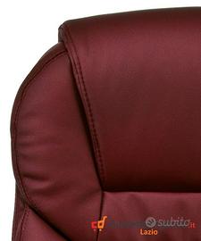 Comodissima Poltrona ergonomica direzionale girevole in Ecopelle. -Prezzo: 119 euro IVA inclusa -Trasporto GRATIS in tutta Italia -Possibilità di pagare alla consegna con 6 euro in più Ideale per riunioni e conferenze in ufficio, ma anche per la casa e lo studio, dispone di un pistone a gas per regolare l'altezza della sedia a livello della scrivania e di un sistema dondolo per regolare la postura. Presenza di microfori nella parte centrale della seduta e della spalliera per permettere una migliore areazione. Realizzata con ottimi materiali, questa comoda poltroncina presidenziale può reggere carichi molto pesanti. La qualità dell'ecopelle utilizzata per il rivestimento è ottima ed è caratterizzata da morbidezza al tatto, traspirabilità, idrorepellenza, resistenza all'usura e facile pulizia. A differenza della maggior parte dei rivestimenti utilizzati per le altre poltrone e sedie che troverete in commercio, non avrete la sensazione di essere seduti sulla plastica o su una pelle di scarsa qualità. Rispetto ad altri venditori, abbiamo preferito questo tipo di ecopelle di altissima qualità al posto di una pelle scadente, dura e quindi sgradevole al tatto, tendente a macchiarsi, non traspirante e che avrebbe avuto come unico vantaggio quello di una migliore resa di marketing. SCHEDA TECNICA: - Colore Seduta : Bordeaux - Altezza Regolabile a Gas - Poggiabraccia Imbottiti - Supporto Lombare - Meccanismo a dondolo regolabile e bloccabile - Altezza Spalliera: 75 cm - Larghezza Spalliera: 50 cm - Profondità Seduta: 50 cm - Larghezza Seduta: 54 cm - Larghezza Seduta con braccioli: 67 cm - Altezza Spalliera da terra min/max: 110/120cm - Altezza Seduta da terra min/max: 50/60cm - Base in Nylon con 5 Ruote - Diametro base con ruote: 70cm imbottita poltroncine riunione conferenza Contattaci subito per avere maggiori informazioni. Oppure inviaci un messaggio con il tuo numero e ti richiameremo non appena possibile Telefono/Whatsapp: 388 3274125