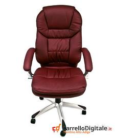 Comodissima Poltrona ergonomica direzionale girevole in Ecopelle. -Prezzo: 119 euro IVA inclusa -Trasporto GRATIS in tutta Italia -Possibilità di pagare alla consegna con 6 euro in più Ideale per riunioni e conferenze in ufficio, ma anche per la casa e lo studio, dispone di un pistone a gas per regolare l'altezza della sedia a livello della scrivania e di un sistema dondolo per regolare la postura. Presenza di microfori nella parte centrale della seduta e della spalliera per permettere una migliore areazione. Realizzata con ottimi materiali, questa comoda poltroncina presidenziale può reggere carichi molto pesanti. La qualità dell'ecopelle utilizzata per il rivestimento è ottima ed è caratterizzata da morbidezza al tatto, traspirabilità, idrorepellenza, resistenza all'usura e facile pulizia. A differenza della maggior parte dei rivestimenti utilizzati per le altre poltrone e sedie che troverete in commercio, non avrete la sensazione di essere seduti sulla plastica o su una pelle di scarsa qualità. Rispetto ad altri venditori, abbiamo preferito questo tipo di ecopelle di altissima qualità al posto di una pelle scadente, dura e quindi sgradevole al tatto, tendente a macchiarsi, non traspirante e che avrebbe avuto come unico vantaggio quello di una migliore resa di marketing. SCHEDA TECNICA: - Colore Seduta : Bordeaux - Altezza Regolabile a Gas - Poggiabraccia Imbottiti - Supporto Lombare - Meccanismo a dondolo regolabile e bloccabile - Altezza Spalliera: 75 cm - Larghezza Spalliera: 50 cm - Profondità Seduta: 50 cm - Larghezza Seduta: 54 cm - Larghezza Seduta con braccioli: 67 cm - Altezza Spalliera da terra min/max: 110/120cm - Altezza Seduta da terra min/max: 50/60cm - Base in Nylon con 5 Ruote - Diametro base con ruote: 70cm imbottita poltroncine riunione conferenza Contattaci subito per avere maggiori informazioni. Oppure inviaci un messaggio con il tuo numero e ti richiameremo non appena possibile Telefono/Whatsapp: 388 3274125