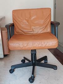 Poltrona da ufficio vintage in pelle. Una rotella è da ripristinare (vedi foto).