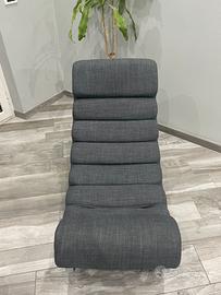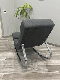 Poltrona a dondolo design color grigio e metallo. Piccolo difetto.