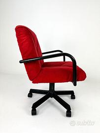 Poltrona modello Davis disegnata da Vico Magistretti per ICF negli anni 80. Regolabile in altezza e girevole. Interamente rivestita in alcantara color rosso, con gambe e braccioli in acciaio verniciato nero. In ottime condizioni come da foto, imbottitura piena, meccanismi funzionanti. Normali lievi segni del tempo, come in foto.