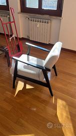 Poltrona dal design moderno, perfetta per un salotto elegante e minimalista. Le sue linee semplici si adattano perfettamente a diversi ambienti. L’imbottitura è rivestita da una fodera grigia chiara, mentre i braccioli sono in legno, unendo funzionalità e stile.