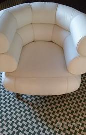 Poltrona design in pelle bianca, base acciaio cromato. Nuova. In quanto fa parte di rimanenze a seguito chiusura negozio arredamento. Per altre foto chiedere.