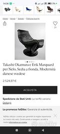 Takashi Okamura e Erik Marquard per Nelo, Sedia a fionda, Modernità danese svedese, la poltrona e' in ottime condizioni, struttura legno verniciato nero e seduta in pelle nera con cuciture, Originale e perfettamente conservata, si trovano pochi modelli identici o a prezzi alti o molto usurate.