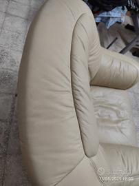 Poltrona di vera pelle colore beige/panna in perfette condizioni. Nessun segno di usura o difetto, è stata sempre coperta. È una marca tedesca Garnitur.