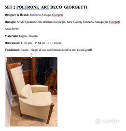 Coppia di Poltrone New Gallery di Umberto Asnago per Giorgetti acquistate fine anni 90 ed in ottime condizioni.. Il comfort di seduta è molto buono, con una sospensione solida. Il tessuto è di un bel colore crema .