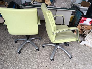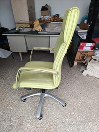 1 poltrona in pelle verde direzionale con sistema oscillante più alza e abbassa e girevole, e 2 poltrone con alza e abbassa e risevoli.