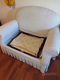 Vendo poltrona letto / divano letto 120x90, comodo e robusto, con meccanismo estraibile e rete a doghe in legno.