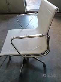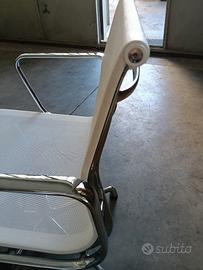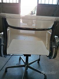 Poltrona Eames costruita da ICF con braccioli. Finitura in rete bianca, cromata, girevole , si alza e abbassa