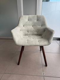 Vendesi copia di poltrone in ecopelle, ottimo stato, color grigio chiaro, gambe legno. 100 euro la coppia, 60 euro una