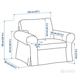 Elegante poltrona modello Ikea Ektorp. Tenuta molto bene, usata pochissimo, disponibile fodera aggiuntiva per i cuscini.