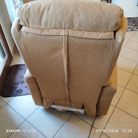 Poltrona elettrica marca PerDormire, tessuto antimacchia sfoderabile e lavabile, color ocra. Motore alzapersona + motore per schienale reclinabile e poggiapiedi allungabile, tutto con telecomando. Ottime condizioni, come nuova, praticamente inutilizzata (coperture da imballaggio originale ancora presenti su alcune parti). Ha le ruote, si sposta senza sforzo, si trova al secondo piano con ASCENSORE, quindi comodamente ritirabile dall'acquirente.