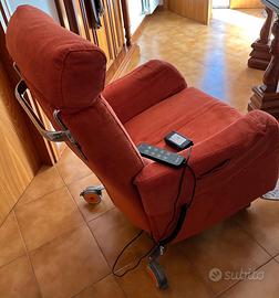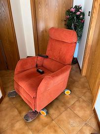 Poltrona elettrica alzapersona, reclinabile, elevabile con telecomando e poggiapiedi - larga cm. 70- 4 ruote con freno per disabili Modello DADA UP colore arancione. Batteria inclusa. Usata ma in buono stato. Ritiro sul posto.