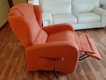 Poltrona elettrica con 2 motori che consentono di regolare schienale e pediera separatamente, provvista di rotelle per spostarla comodamente con una persona seduta. In morbido tessuto Alcantara, lavabile e in parte sfoderabile. Fabbricata in Italia, marca Rossi, prodotto di ottima qualità, perfettamente funzionante. La poltrona da nuova è stata pagata sui 1000 euro, vendo causa inutilizzo. Non spedisco, ritiro a cura dell'acquirente a Trieste, quinto piano.
