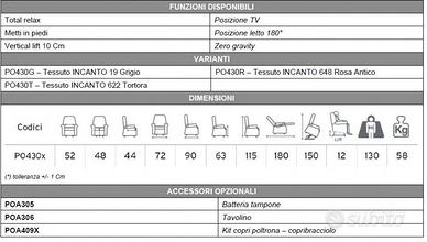 Vendo per inutilizzo poltrona relax motorizzata Moretti modello CLYZIA PO430, colore grigio tortora (Incanto 622).