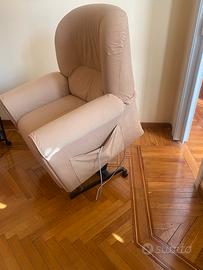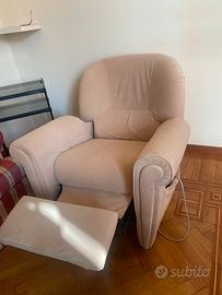 Poltrona reclinabile con poggiapiedi elettrificata, munita di telecomando.