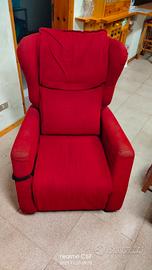 poltrona elettrica reclinabile, in Alcantara rosso, con telecomando e possibilità di allungarsi completamente... in buono stato