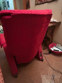Poltrona relax elettronica massaggiante, ideale per il massimo comfort e benessere quotidiano. Rivestita in tessuto imbottito color rosso/bordeaux, morbido al tatto e resistente, si adatta facilmente a diversi ambienti della casa.