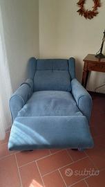 Vendo poltrona relax elettrica Global Relax con funzione massaggio, colore blu, in condizioni pari al nuovo. Vendo per inutilizzo, praticamente mai usata. Dotata di doppio telecomando, uno per la reclinazione elettrica (schienale e poggiapiedi), uno per la funzione massaggiante con diverse modalità e intensità (ancora con pellicola protettiva) Perfettamente funzionante in tutte le sue parti, ideale per massimo comfort in casa. Caratteristiche: - Reclinazione elettrica completa - Sistema massaggiante integrato - Doppio telecomando incluso - Seduta ampia e molto confortevole - Schienale alto ergonomico Disponibile anche altra poltrona uguale, usata con più frequenza, ma comunque in ottime condizioni (si veda altro annuncio) Valuto proposte sensate.