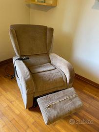 Poltrona elettrica reclinabile per anziani, pari al nuovo, di tessuto beige simil velluto, funzionante. Ritiro a carico dell'acquirente.