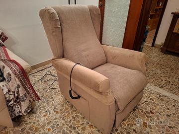 Poltrona lift con schienale anatomico e confortevole in tessuto Gordon classificata come dispositivo medico classe 1 CE, dotata di copri seduta e tasche laterali.