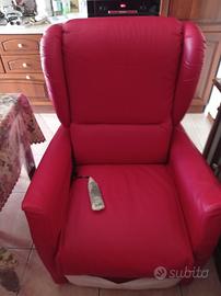 Vendo poltrona relax, in pelle rossa ed elettrica con telecomando. Caratteristiche: funzione alza persona, rollersister, seduta XL, pedana alza piedi. 2 motori Perfettamente funzionante. Vendo x trasloco.