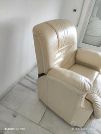 Vendersi poltrona elettrica in vera pelle,con opzione massaggio,in perfette condizioni.Color beige chiaro. Ritiro al carico dell'acquirente,si trova all'8° piano,zona San Giovanni/Porta Metronia