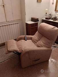 facile da usare e veramente comoda, perfetta anche per anziani o disabili. Seduta alta a 47 cm da terra, molto comoda. Misure della poltrona: larga 74 cm, profonda 80 cm e alta 96 cm. Condizioni molto buone, vendo per inutilizzo.