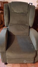 Vendesi poltrona elevabile nuova, tessuto in microfibra di colore verde scuro dotata di telecomando per alzare/abbassare la seduta, lo schienale, il poggiagambe.