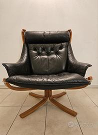 Vendo poltrona in pelle nera, modello Falcon , designer Sigurd Ressell , produttore Vatne Møbler , costruita in Norvegia fine anni 70 .
