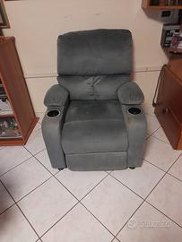 reclinabile manualmente con poggiapiedi. macchiata quindi è da pulire.