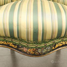 Poltrona con gambe mosse in legno laccato e dipinto con decorazioni fogliacee in