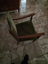 Vendo a 15 euro, questa poltrona in legno con imbottitura in colore verde. La struttura è in buonissimo stato. L'imbottitura ha perso un po' di densità, consigliabile l'utilizzo di un cuscino, oppure rifare l'imbottitura. Ritirabile, o nel comune di Impruneta, o Montespertoli. Per ulteriori informazioni contattatemi.