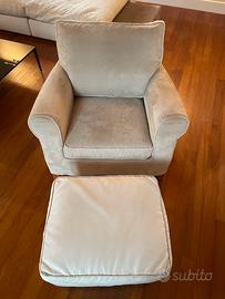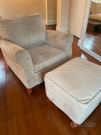 Dimensioni poltrona: larghezza 90 cm, lunghezza 90 cm, altezza 85 cm. Dimensioni pouf: larghezza 55 cm, lunghezza 48 cm, altezza 40 cm.