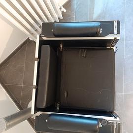 Le immagini mostrano la struttura chiusa o completamente aperta; non si tratta solo di un baule da trasporto, ma di un oggetto che si trasforma in una poltrona. Questa è una configurazione molto particolare che sfrutta la robustezza e la struttura modulare dei flight case per creare un mobile funzionale e facile da trasportare.