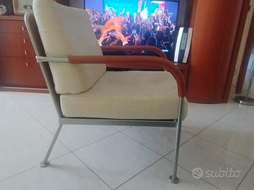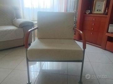 Vendo poltrona sfoderabile , colore del legno ciliegio e tessuto beige.