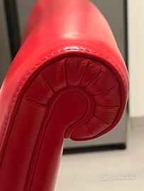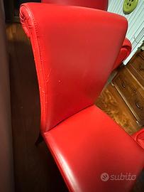 3 splendide sedie Poltrona Frau - mod. Vittoria, pelle pieno fiore colore Rosso con gambe wenge’, combinazione introvabile, struttura in legno massello di frassino, schienale che termina con voluta aperta particolarmente raffinata. Le sedie presentano normali segni dovuti all’età, vedi foto, ma rimangono bellissime. Chiedete pure foto più dettagliate.