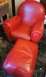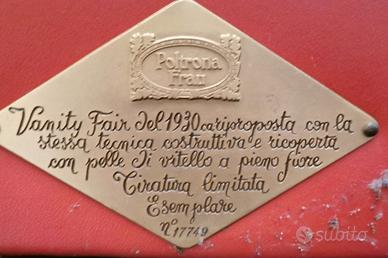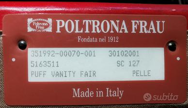'ICONICA POLTRONA VANITY FAIR DI "POLTRONA FRAU" (IN VENDITA)... FairdiPoltrona FRAU è uno dei simboli più celebri del design italiano nel mondo. Modello:Originariamente denominata "modello 904" nel catalogo del 1930, è stata rinominata Vanity Fair nel 1984. Creata daRenzo Frau, si distingue per la forma arrotondata e la fila dichiodini rivestiti in pelle che rifiniscono il retro La struttura è in faggio stagionato, con imbottitura in crine vegetale e gommato. I segni di usura sulla poltrona Vanity Fair di Poltrona Frau sono spesso considerati parte integrante del suo carattere, sottolineandone l'autenticità e la storia senza comprometterne l'eleganza specialmente su modelli vintage (come quelli degli anni 2000), che sono visti nel mondo del collezionismo necessari per la storia dell'oggetto. (possibilità di avere il pouf)