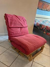Vendo poltrona futon IKEA in legno, con materasso imbottito color rosso bordeaux.