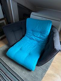Poltrona trasformabile in futon; ottima per camera ragazzi come seduta o materasso per ospitare un amico; marca Karup