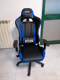 Poltrona gaming dotata di alzata a gas e di meccanismo oscillante executive fino a 180 gradi. Bracciolo regolabile in altezza e con movimento 3D. Doppio cuscinetto lombare e cervicale imbottito e removibile. Razza in ferro con ruote piroettanti in nylon.
