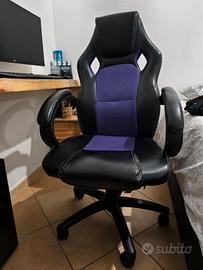 Poltrona, sedia Gaming Viola-Nero, 360° con rotelle.