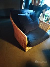 poltrona gervasoni in pergamena naturale completa di cuscini solamente rosicchiata un po' su un bracciolo