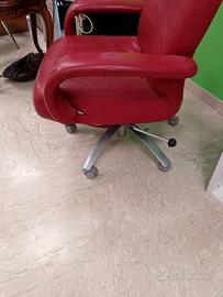 Poltrona girevole e regolabile in pelle rossa da ufficio o casa con poggiapiedi in buone condizioni. Ritiro in zona.